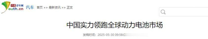 2.中国青年网:《中国实力领跑全球动力电池市场》2025-05-30