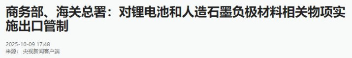 3.央视新闻:《商务部、海关总署:对锂电池和人造石墨负极材料相关物项实施出口管制》2025-10-09