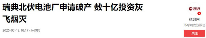 1.环球网:《瑞典北伏电池厂申请破产 数十亿投资灰飞烟灭》2025-03-12